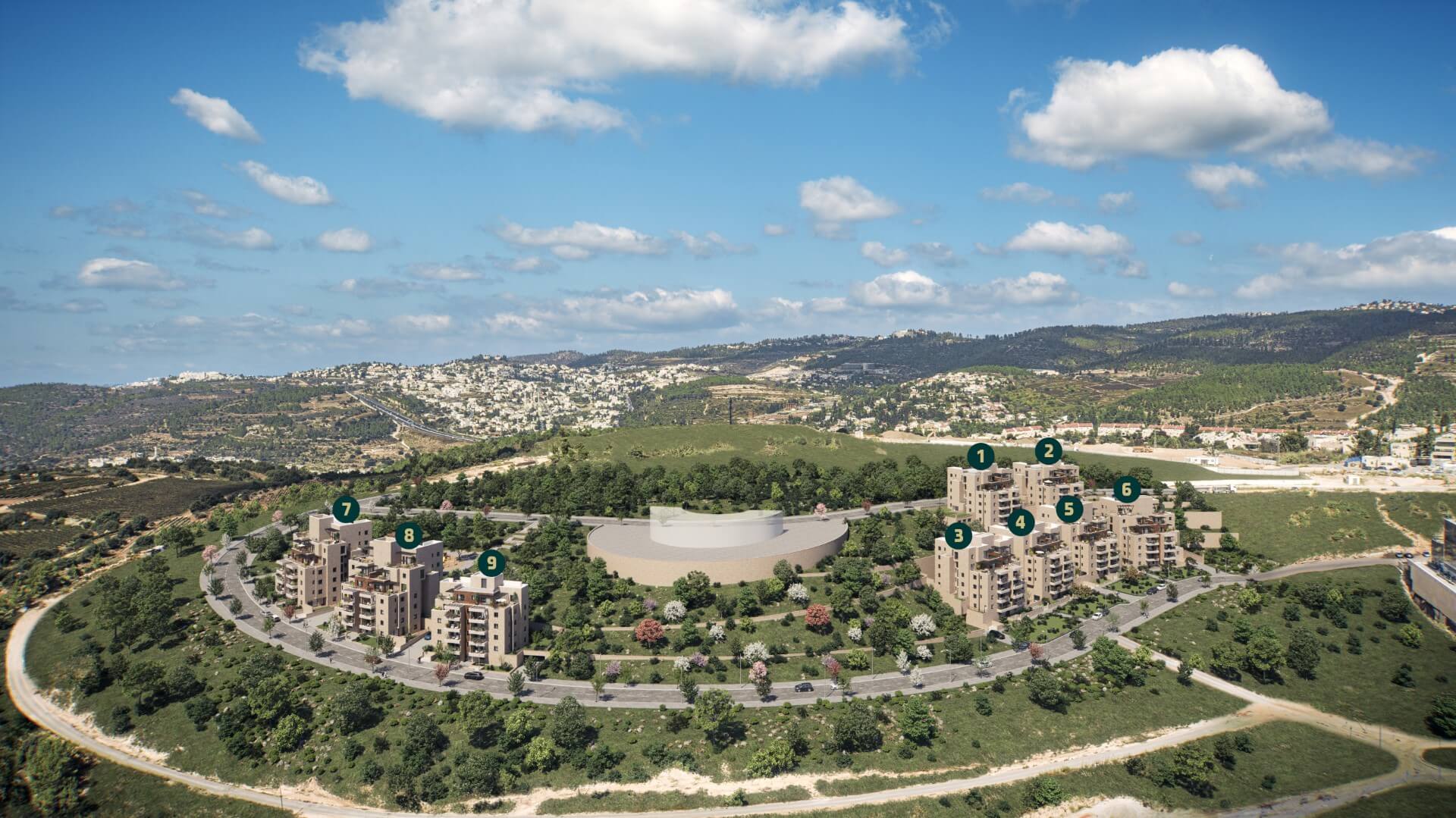 מיקומה הייחודי של השכונה, על גבעה עטופה בנוף קסום ופסטורלי של הרי ירושלים, מבטיחים לתושביה איכות חיים בסביבת מגורים נעימה, בטוחה ושלווה.